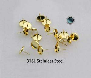 - Product Name: 50pcs/100pcs 8mm 10mm 12mm 14mm 16mm 316L Stainless Steel Round bezel Earring Blanks / Gold stud Earrings post with Stopper Backs Findings