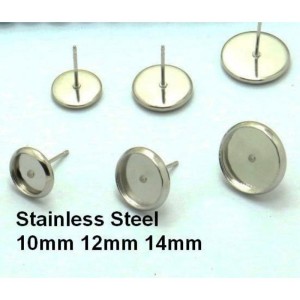 - 50pcs 10mm 12mm 14mm Stainless Steel Round bezel Earring Blanks /earring base, earring base settings with backs